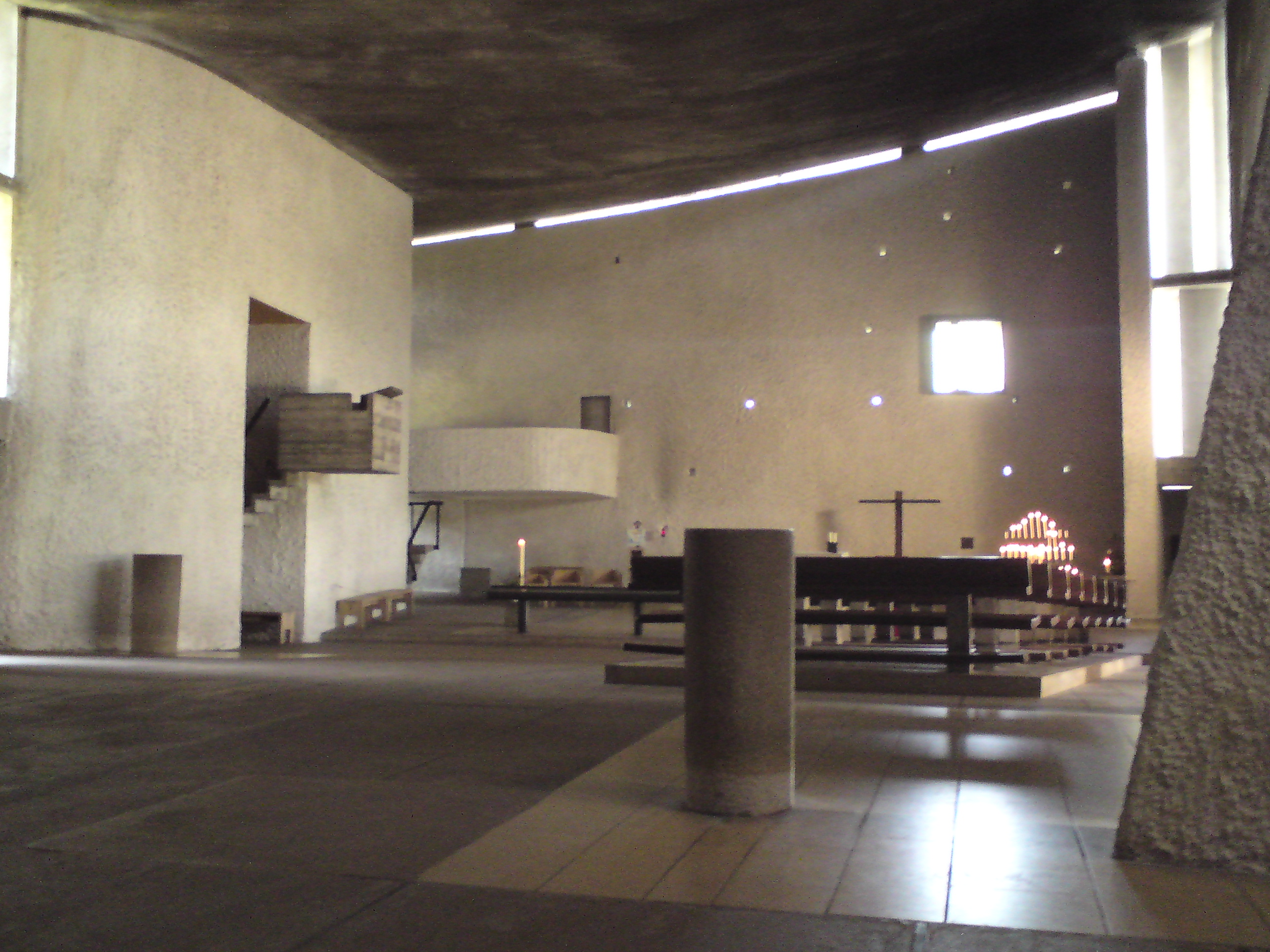 i’ve been a worshipper of le corbusier for years and when we went on holiday with our german friends to france to meet our french friends for a week away they offered to take me to see ronchamp, which was utterly amazing; once in a lifetime memories as far as i’m concerned. anyway what with all these cubes it reminded me of the little windows that run along the one side. with the depth of the walls the recesses make a cube almost, plus combined with the serenity of the space inside (going back to how this all started) and how in a tutorial we discussed referring back to the scale of a room in proportionally sized cubes inside they seems a few cross threads that should be explored.